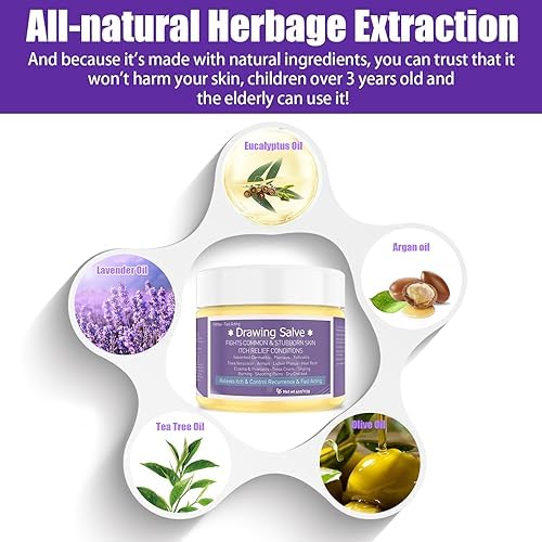 Drawing Salve, Tea Tree Oil, Heat Rash Cream, Psoriasis Eczema, Jock Itch, Foot Hand, Tinea Versicolor, Itchy Feet, Butt, Anal Itch, Scalp Dandruff, Bites, Boil, Cyst, Adults Kids Skin Relief Soothing