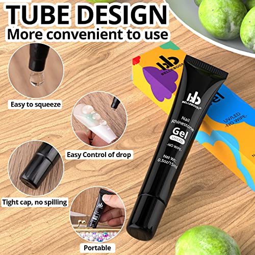 💎NO WIPE TUBE DESIGN GLUE: For your better experience for nail art decoration, the tube glue gel is very easy to squeeze and dot directly to the place you want to stick gems with no mess. It is easy to control the amout for sticking both big and small stones. This nail glue gel is much easier to carry and store with no leakage.
