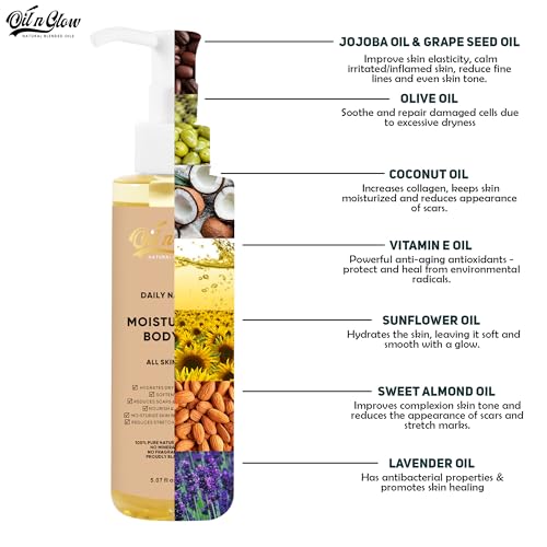 NO NASTIES INCLUDED: Our moisturizing body oil is made with you in mind. It contains no parabens, added phthalates, artificial scents, or chemicals. It is non-comedogenic and suitable for sensitive skin.