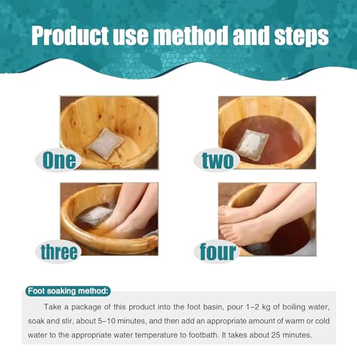 Usage : Soak in boiling water above 90°C for 5 minutes and wait for the water temperature to cool down to 45°C,15-30 minutes each time,it 3 to 5 times per week,Use as foot soak or full body bath as you like or for your convenience,Put the bag directly into the water when using it;