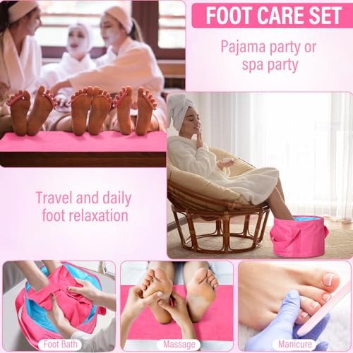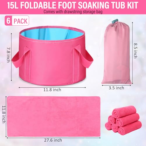 Products Package: the package includes 6 rose red portable foot baths, 6 bathroom towels, and 6 storage bags, designed in an adorable pink color; Your slumber party or spa themed birthday party by using our foot soaking tubs, make your party more exciting and memorable