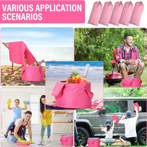 12 Pcs 15L Foldable Foot Soaking Tub Kit Portable Foot Bath Tub Foldable Foot Basin Bath Foot Tub for Soaking Feet with Towel and Storage Bag Soak Spa Bucket for Travel Camping Rose Red