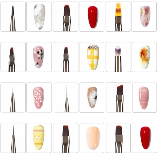 【Multiple Use】The variety of brush sizes is perfect for nail art design, helping you create beautiful nail patterns in seconds. Ideal for drawing thin fine lines, painting flowers and pattern design on nail tips. Great for small details, filling in colors, marbling, swirling, blending, short strokes, etc.