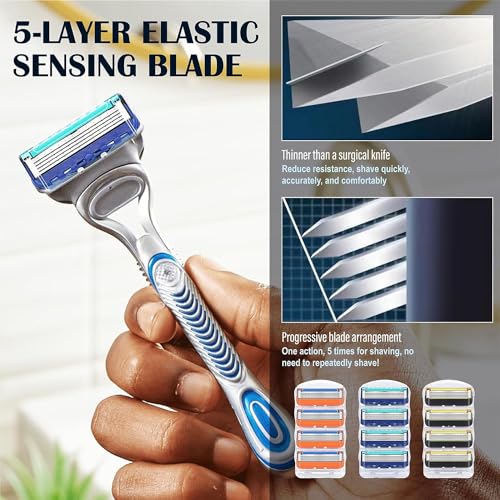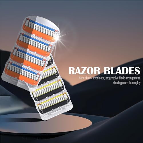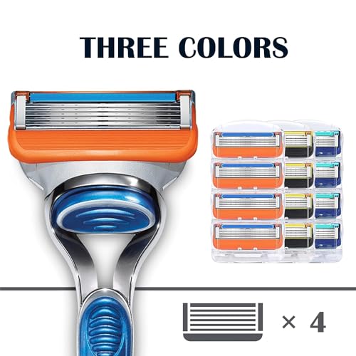 12PCS Blades for Men, 12PCS Razor Blade Shaving Razor Blade Refills for Fusion 5, New Version Orange