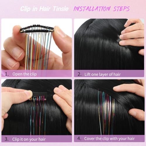 【Upgraded Clip In Hair Tinsel Advantages】:Hair Tinsel saves a lot of installation time without the use of specialized tools. Made of very high quality clips with soft and durable cloth and silicone protection, it will not pull and damage your hair and can be reused.
