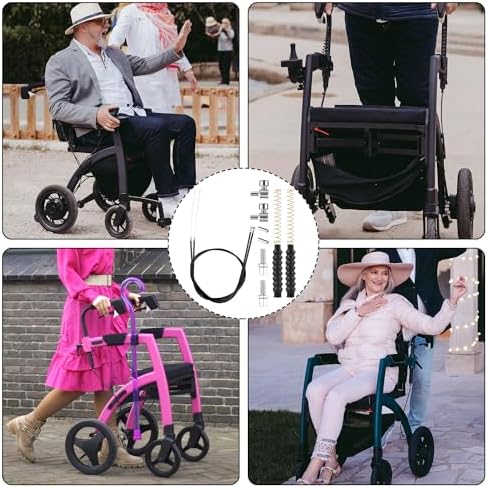 Package Content: You will receive 1 set of rollator brake cable replacement parts, including 2 brake cables, 2 black rubber tubes, 2 springs, 2 spring protective cases, 2 cable adjustment screws, 2 cable fasteners and 2 cable end caps.
