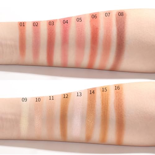 【16 Colors Makeup Palette】The blush palette is available in 16 different colors,with the texture of matte, which can create different styles of makeup. The powder is lightweight and buildable, you can use it singly or overlaid to create more makeup possibility.