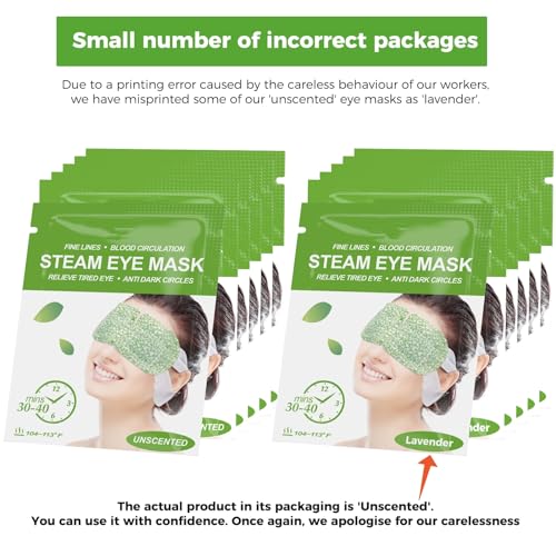 𝟏𝟎𝟒~𝟏𝟏𝟑℉ 𝐇𝐨𝐭 𝐂𝐨𝐦𝐩𝐫𝐞𝐬𝐬 𝐟𝐨𝐫 𝐄𝐲𝐞𝐬- Our warm eye mask adopts steam heating and temperature control technology with up to 104~113℉. Heated eye mask will release fine moist steam, hydrates the skin around eyes, let tired eye enjoy the steam, it kept working with comfortable warmth for your eyes.