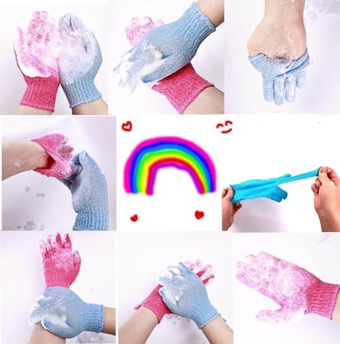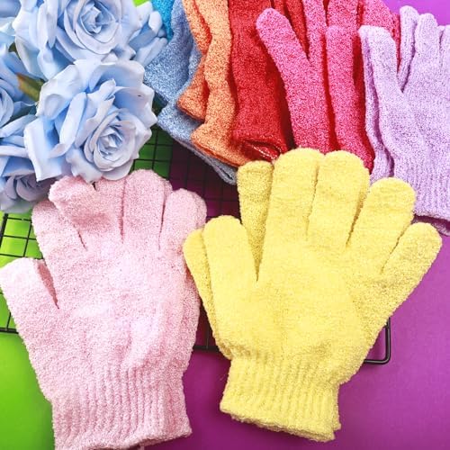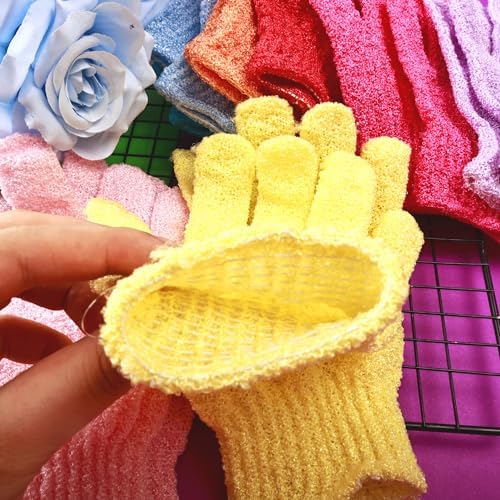 16 Pcs Exfoliating Bath Gloves Shower Gloves, 8 Colors Double Sided Exfoliating Gloves for Beauty Spa Massage Skin Shower Body Scrubber Bath Accessories, Made of Nylon
