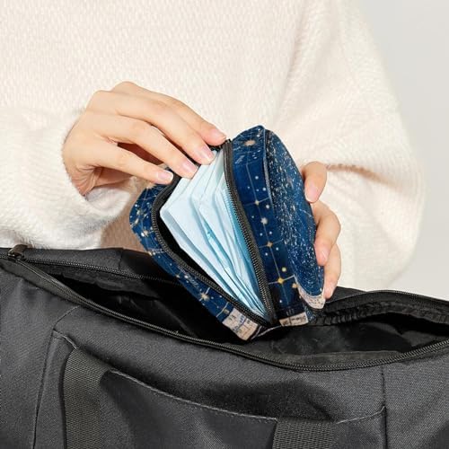 1Pc Portable Sanitary Napkin Storage Bag, Menstrual Cup Pouch, Feminine Care Pads Bag for Girls Women, Tampons First Period Kit, Astrology Wheel with Zodiac Signs Constellation Map