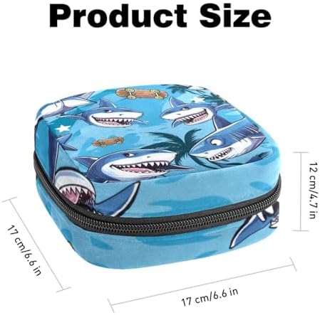1Pc Portable Sanitary Napkin Storage Bag, Menstrual Cup Pouch, Feminine Care Pads Bag for Girls Women, Tampons First Period Kit, Cartoon Shark with Skateboarding and Palm Tree