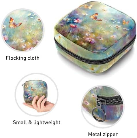 1Pc Portable Sanitary Napkin Storage Bag, Menstrual Cup Pouch, Feminine Care Pads Bag for Girls Women, Tampons First Period Kit, Colorful Butterflies Oil Painting