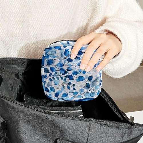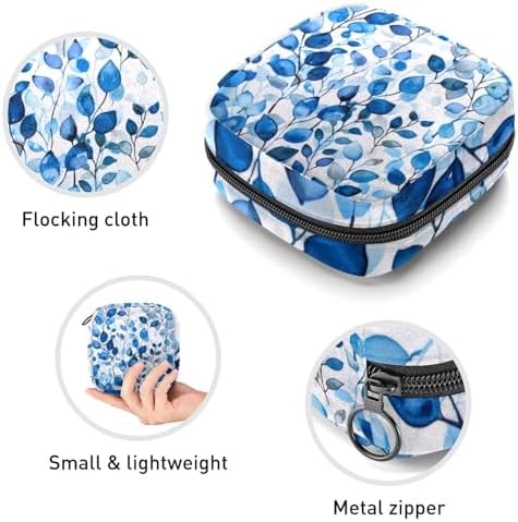 1Pc Portable Sanitary Napkin Storage Bag, Menstrual Cup Pouch, Feminine Care Pads Bag for Girls Women, Tampons First Period Kit, Watercolor Aesthetic Blue Pattern
