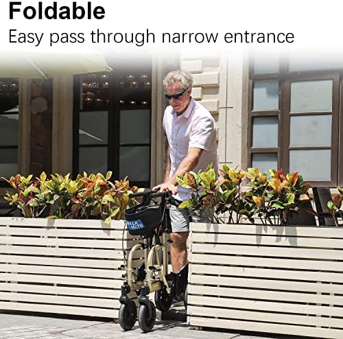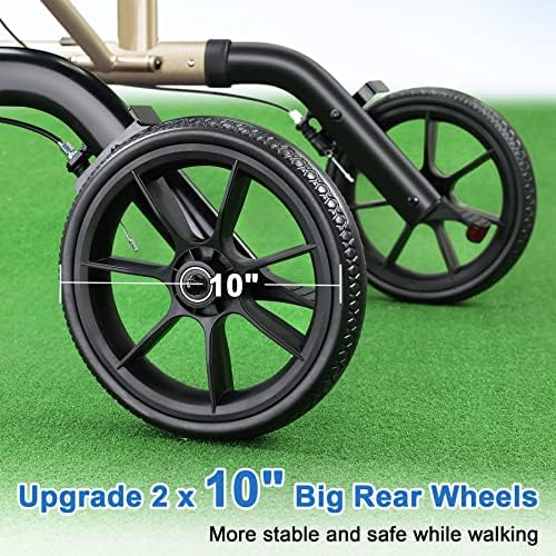 【Big Wheels for Medical Rollator Walker】 Our WAlK MATE rollator comes with 10” rear wheels, the anti skid tread pattern on wheels can increase resistance and can provide stronger grip to prevent the slipping between wheels and road.