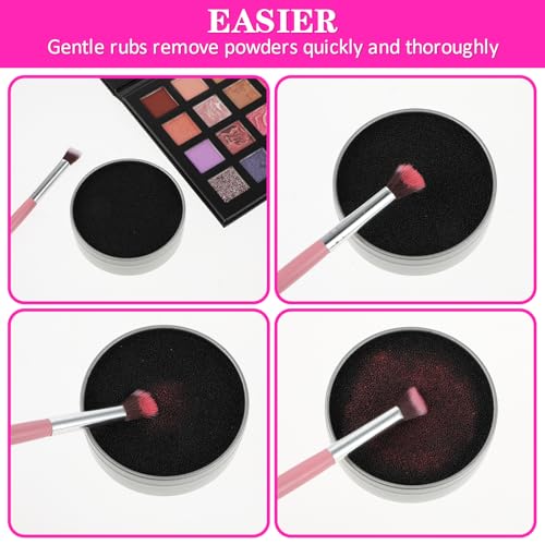 Easy To Use: Gently swipe brush back and forth over the makeup cleaner sponge a few times. The scrubbing sponge will remove pigment from your eyeshadow brushes and the other brushes quickly, you can easily take it with you to clean the brush