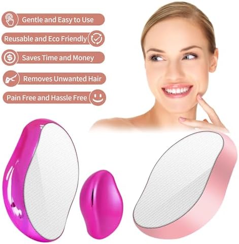 2 Pcs Crystal Hair Eraser for Women and Men Reusable Crystal Hair Remover Portable Magic Painless Exfoliation Hair Removal Tool Washable Magic Hair Eraser for Mothers Day Gifts(Red & Pink)