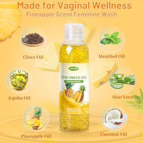 🎈𝐑𝐞𝐟𝐫𝐞𝐬𝐡𝐢𝐧𝐠 𝐒𝐜𝐞𝐧𝐭: To help you feel refreshed and smell good, pineapple yoni wash set delicate yet delightful scent leaves behind a revitalizing tone, keeping your intimate area cleansed and moisturized for longer.