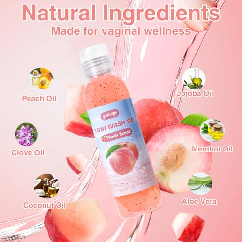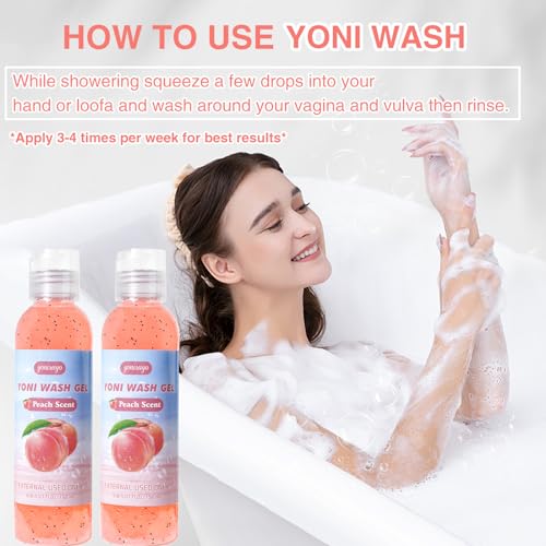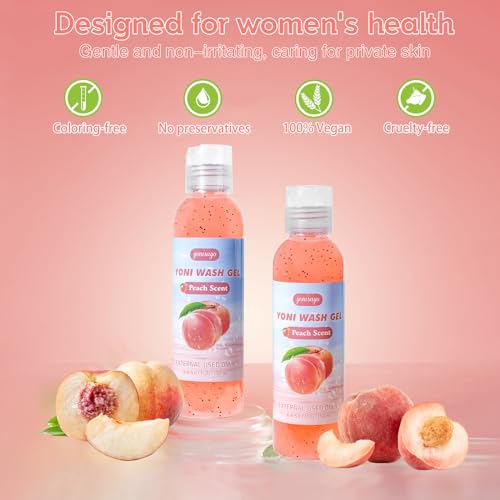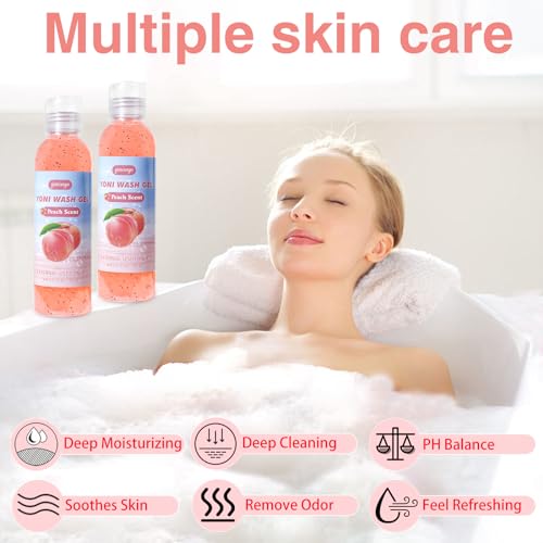 2 PCS Yoni Wash, Natural Feminine Wash Vaginal Wash for Women Ph Balance, Yoni Body Wash for Intimate Moisturizing Remove Odor Deodorant, Peach Scent