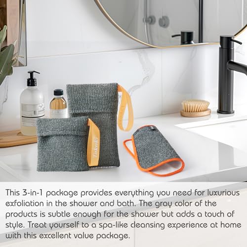 LUXURIOUS EXFOLIATION: Our versatile bath products offer the ultimate pampering experience with this 3-in-1 package that combines everything you need for luxurious exfoliation during baths and showers, leaving your skin feeling refreshed, rejuvenated, and silky smooth from head to toe.