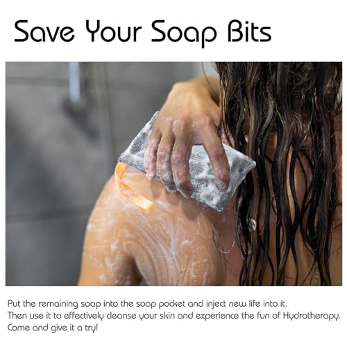 DURABLE & PRACTICAL: Crafted with high-quality materials, our soap saver pouches are built to last and can withstand regular use just like a shower loofah period. Their reusable design makes them easy to clean and maintain, making them an essential accessory for anyone who loves their bath time routine.