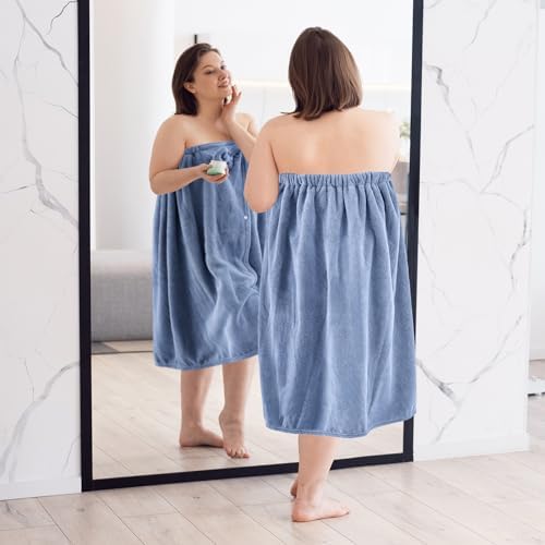 2 Sets Plus Size Womens Wrap Towel with Hair Towel Bath Towel Wrap Shower Dress Towel Spa Wraps for Women’s Bathrobe(Blue)