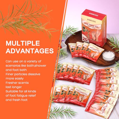 20 PACK Tea Tree Oil Foot Soak with Epsom Salt Lavender Feet Soak for Dry Cracked Feet Soaker – Pedicure Supplies Foot SpaToenail Athletes Foot, Stubborn Foot Odor Scent, Softens Calluses