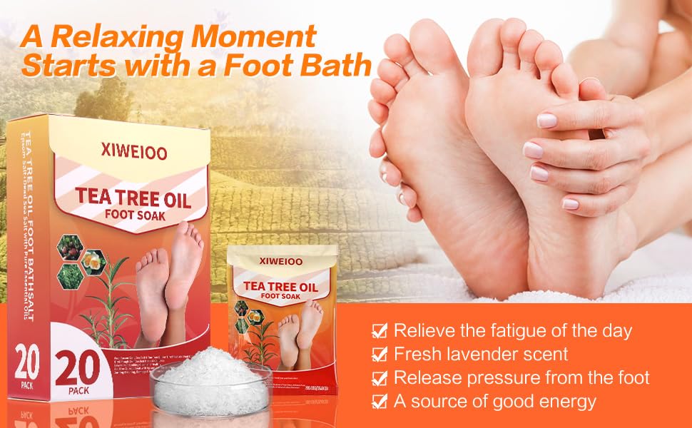 💕Lavender Foot Soak (20pack )– Foot Soak for Dry Cracked Feet – Lavender Oil & Tea Tree Oil Foot Soaker – Pedicure Supplies for tea tree oil foot soak has been used by customers and athletes around the globe to help relax tired feet, softens foot calluses, soothes itchy feet and improves damaged toenails while keeping feet healthy.