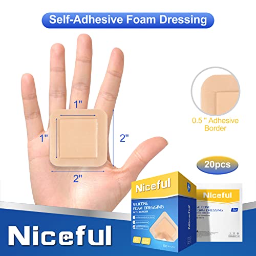20 Packs Silicone Foam Dressing Gentle Border 2x2in, HSA FSA Eligible, Absorbent Silicone Bandages for Wounds, Waterproof Bed Sore Bandages Wound Dressing