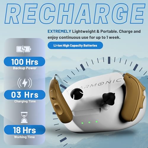 [Fast & Recycle Charging] 3 hours for a full charge, then can be used for 20+ hours. The charging case can recharge both units additional 3 times, with 72 hours of backup power. No need to buy batteries, no need to recharge every day. Let the fast charge and several year long lasting Li-ion batteries replace older battery technology.