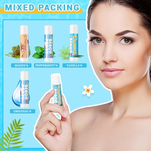 Package Contents: you will receive 24 pieces summer beach SPF 30 sunscreen lip balms, designed in 4 different unique flavors; The flavors include Tasteless, honey, mint, and vanilla cater to diverse preferences providing a delightful lip care journey