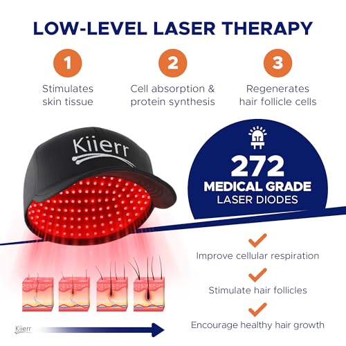 Kiierr’s 272 MD Laser Cap is a FDA-Cleared Clinical Strength hair loss solution for both men and women to treat alopecia, pattern baldness, thinning hair and receding hairlines. Use by itself or use along with other hair loss treatments such as Kiierr shampoo, conditioner, creams, supplements and more.