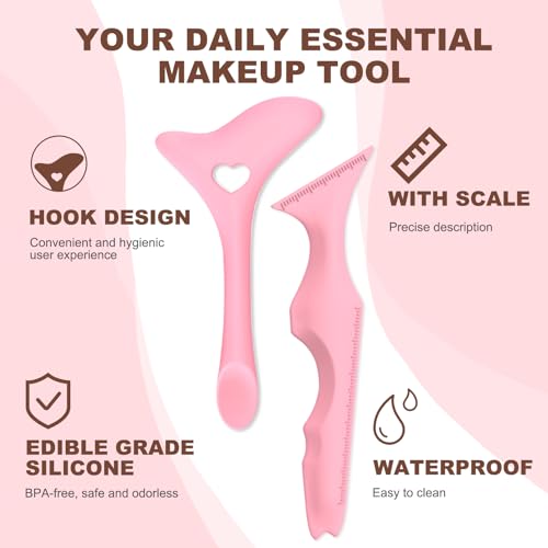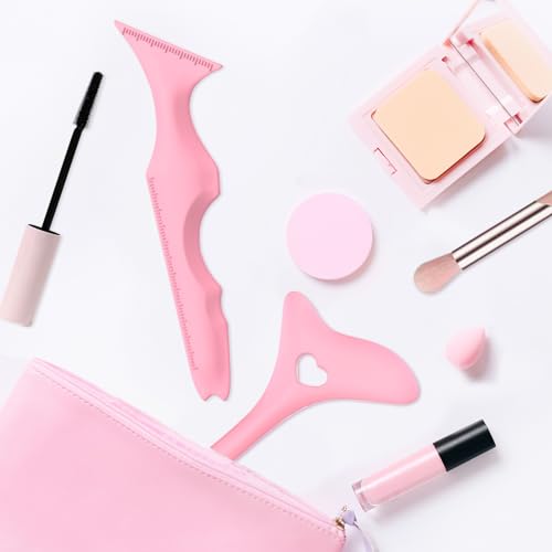 2Pcs Eyeliner Stencils, Silicone Winged Tip, Multifunctional Mascara Shield for Eyeshadow and Eyelashes, Professional &Quick Cat Eye Makeup Tool for Beginners (Pink)