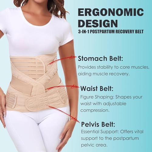 3 in 1 Postpartum Belly Wrap Postpartum Belly Band Support Recovery Belt, After Birth Brace, Body Shaper Waist Shapewear (L, Classic Beige)