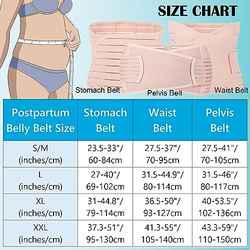 MAMODY 3 in 1 Postpartum Belly Band in 4 Sizes: S/M, L, XL, and 2XL. post partum recovery belts contains Stomach Belt, Waist Belt & Pelvis Belt in 1 set, fulfilled all your needs in postpartum recovery process