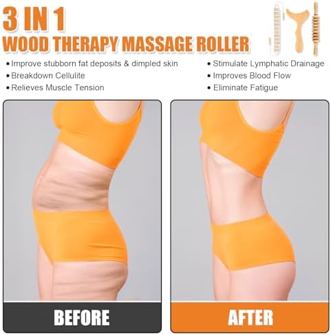 【Efficient Cellulite Remover】The wooden massage roller stick can improve stubborn fat deposits and dimpled skin,helping lymphatic drainage, muscle stimulation, and fat breakdown in targeted areas. Use it as a fat roller for your stomach or as a contouring stick for your waist, hips, thighs, buttocks, and other parts of the body.