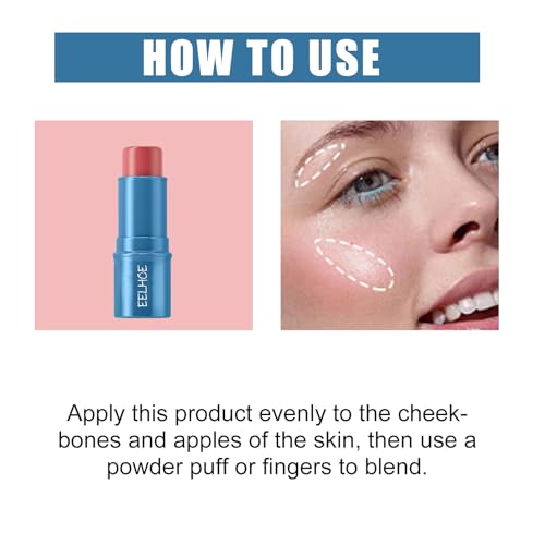 Multifunctional Blush Stick Set: Blush+Highlighter+Shadow,it can be used as contour , eye shadow and blush, it is long-lasting, waterproof, natural-looking, good ideal that lasts all day.
