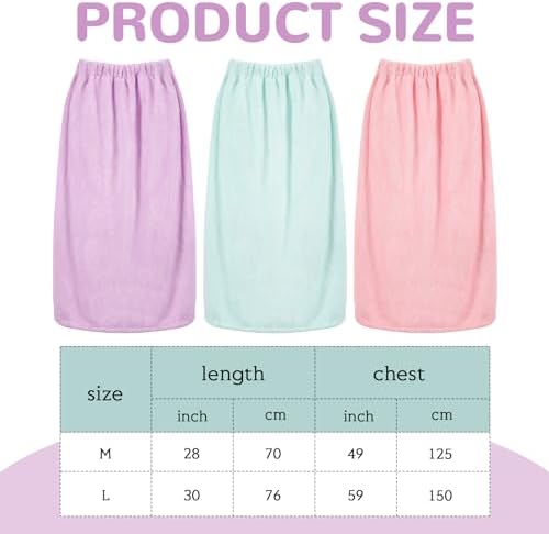 Features: Enjoy radiant colors: Our towel robes come in 3 radiant and elegant colors, namely, light green, light pink, and light purple. These soothing colors add a lovely aesthetic appeal to your bathroom and contribute to a more relaxing bath routine. Bath essentials: Our shower wrap towel offers a blend of comfort, quality, and style. The coral velvet material provides softness, the size ensures a suitable fit, the colors offer elegance, and the design promises longevity. This is an essential addition to your bath essentials. Specifications: Material: coral velvetColor: elegant color/ light green, light pink, light purpleSize: about 30 x 59 inches/ 76 x 150 cm in tiledPackage includes: 3 x Body towel wrapNotes: Manual measurement, please allow slight errors on size. The color may exist a slight difference due to different screen displays.