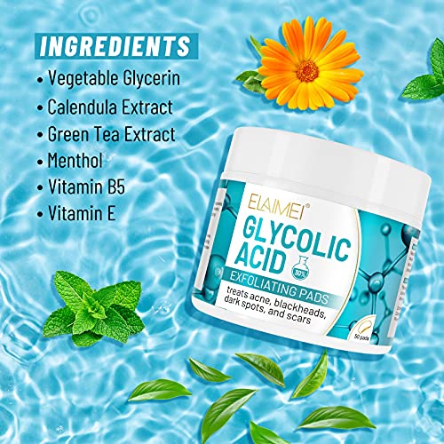 30% Glycolic Acid Pads Salicylic Exfoliating 50 Pads – Exfoliation Skin Tone Blemish Control, Reduces Fine Lines, Wrinkles & Pores, Oil Control for Face and Body