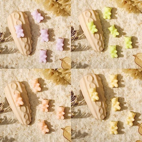 300 PCS Mini Bear Nail Jewelry Cute 3D Bear Nail Art Decorations Macaron Color Frosted Bear Nail Pendant Design DIY Resin Nail Art Accessories