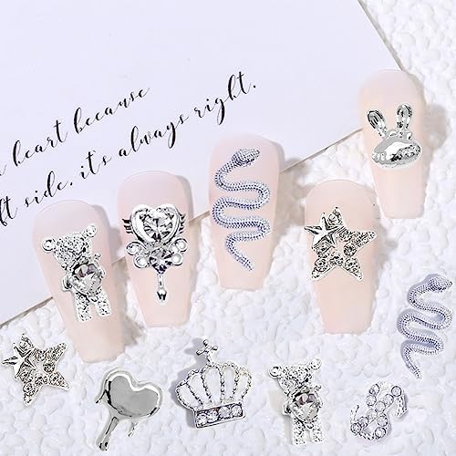 Silver Nail Jewels: You’ll get 30 pieces snake star heart butterfly nail jewelry with shiny rhinestone alloy nail art accessories. Enough quantities to meet your nails daily design needs, make your nail to be charming.