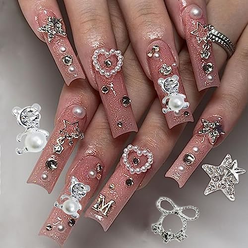 Metal Nail Jewelry: Mixed Nail Charms for Acrylic Nails. This nail jewelry set adopts multi-elements such butterfly, flower, star, bear, heart, etc., each nail charm can be used individually or in combination to bring more creativity to your nail designs.
