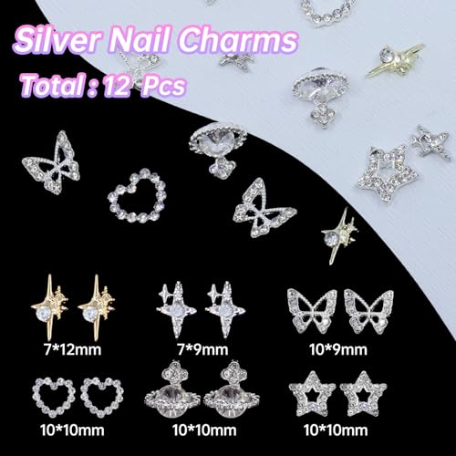 The nail alloy charms have butterfly, star, heart, planet, hollow star. And acrylic nail charms have bow tie, ice cream, tiny flower and so on.