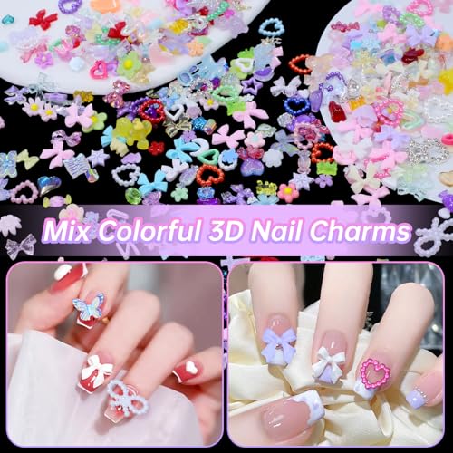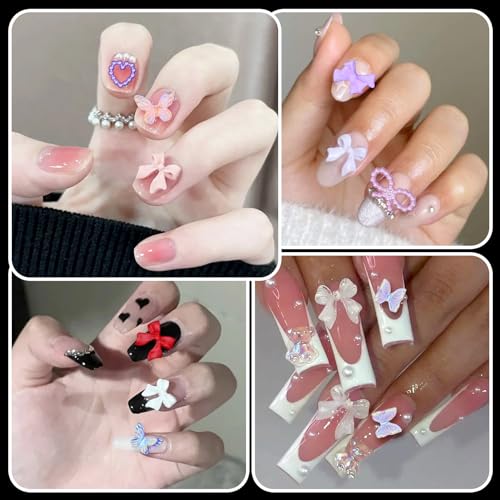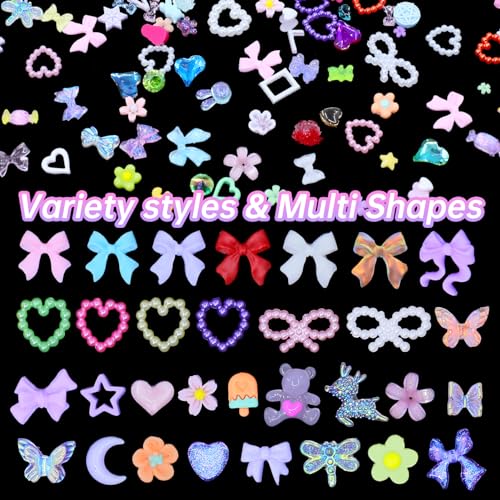 ★Various Shape: The nail alloy charms have butterfly, star, heart, planet, hollow star. And acrylic nail charms have bow tie, ice cream, tiny flower and so on.