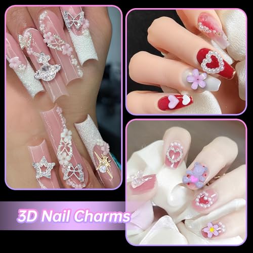3D Alloy Pearl Nail Charms Color Butterfly Planet Heart Star Nail Rhinestones Gems Charms Bow Flower Nail Charms for Manicure DIY Craft Jewel Accessories