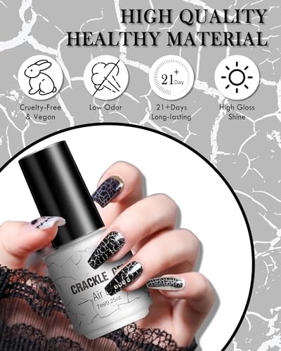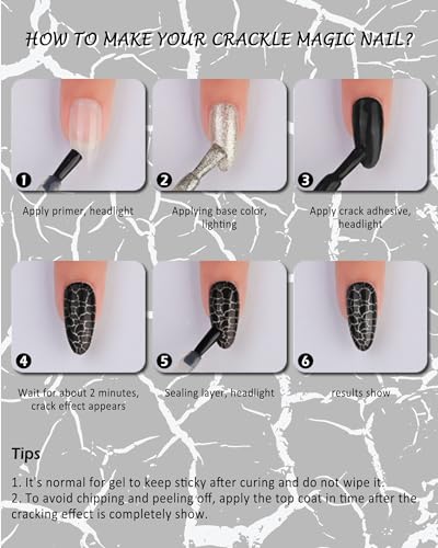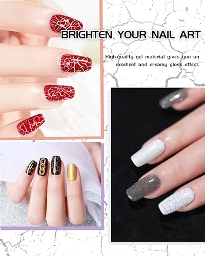 Easy Application & Long lasting- The crackle gel polish set is so easy to use, it features an upgraded ultra-soft and smooth brush head that adheres perfectly to the surface of your nails, making it easy to achieve a smooth and flawless finish, even in the smallest corners. In other words, you can get the same effect as a nail salon with just one swipe. It needs to be cured under an LED UV light. If applied properly, it will stay on for at least 3 weeks and still look bright and shiny.