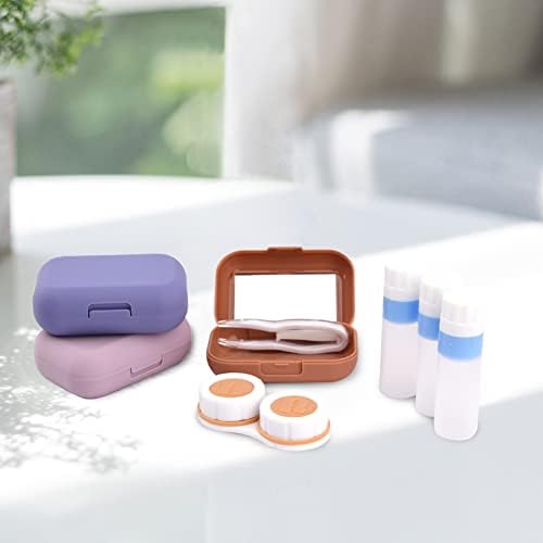 3PCS Contact Lens Case Colorful Contact Lens Box Holder Container Portable Contact Lens Inserter/Remover&tweezer with Mirro Solution Bottle