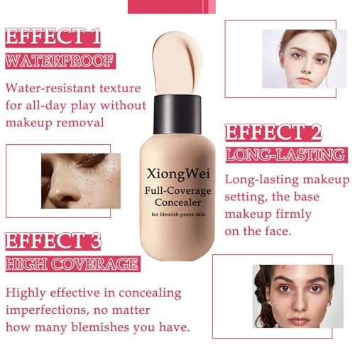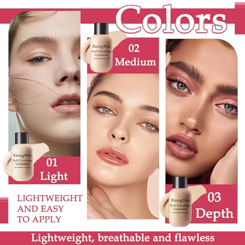 3PCS Full Coverage Foundation Set,Moisturizing High Coverage Liquid Concealer Foundation Makeup,Waterproof Long Lasting Creamy Liquid Foundation,Matte Liquid Concealer for Women