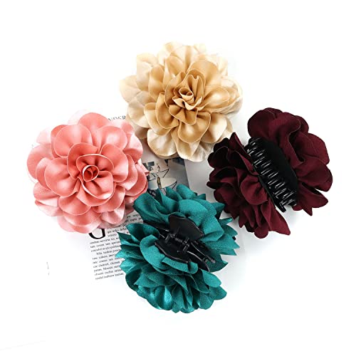A VARIETY OF 4 COLORS: Each flower hair claw clip displays one bright color, total 4 different beautiful colors including champagne, pink, green and wine red. Different colors of hair clips are enough to meet your daily needs of clothing and hairstyle matching.