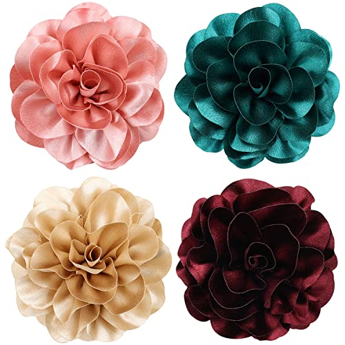 Dizila 4 Pack Solid Satin Large Rose Flower Hair Claw Clips Black Plastic Bow Barrettes Clamps Bun Updo Holders