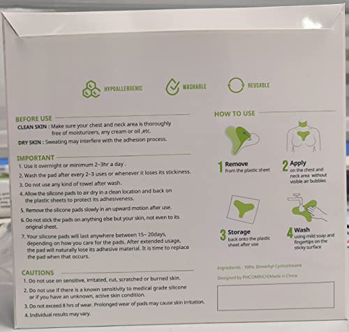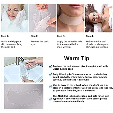 Eliminate Neck Wrinkles: Our reusable wrinkle pads can prevent and eliminate those wrinkles caused by sun damage, lifestyle, and aging. For better results, please use these chest wrinkle pads on your neck while sleeping.